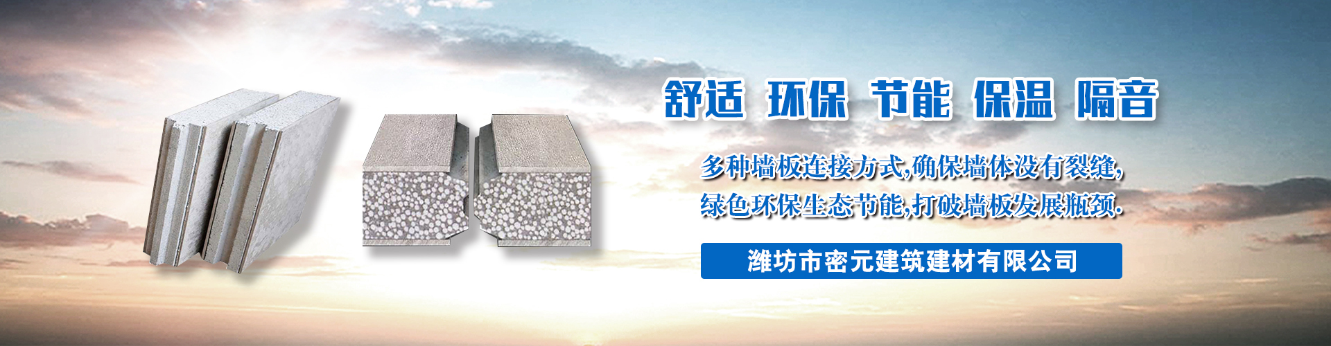 濰坊市密元建筑建材有限公司是一家高科技、綠色環(huán)保、節(jié)能降耗、致力于生態(tài)環(huán)境的墻體材料專業(yè)公司。公司專業(yè)生產(chǎn)暢銷煙臺(tái)等地的防火墻板,隔音墻板,FPB輕質(zhì)墻板,FPB輕質(zhì)隔墻板,ACC輕質(zhì)墻板,ACC復(fù)合墻板,ACC隔墻板等墻體材料。公司位于諸城市開發(fā)區(qū)舜王工業(yè)園內(nèi),地理?xiàng)l件優(yōu)越,交通十分便利。…